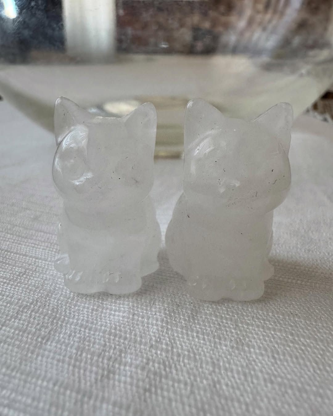 Милий мініатюрний котик, вирізьблений із натурального гірського кришталю — каменю чистоти, світла та ясності.