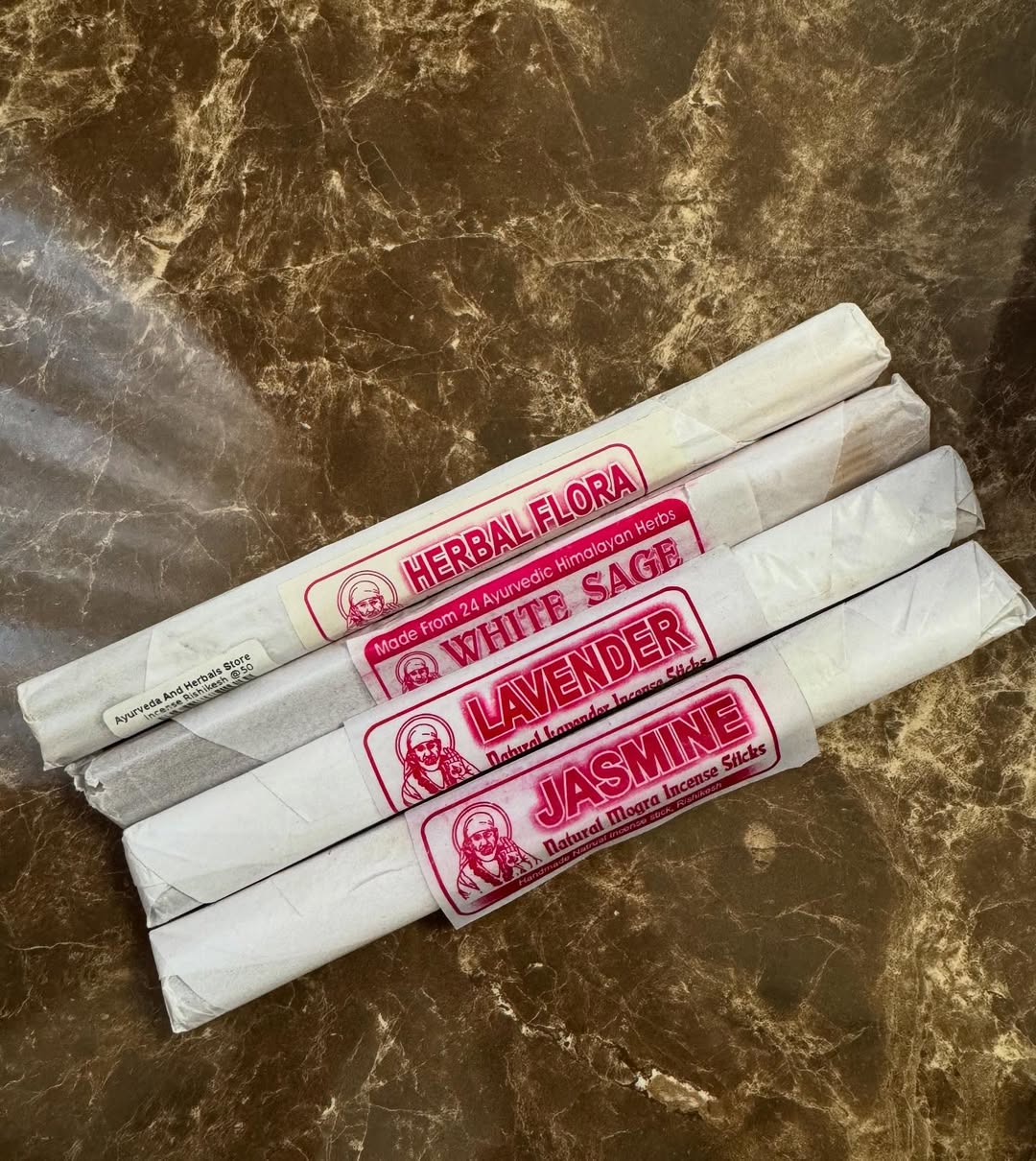 Ці ароматичні палички виготовлені вручну за традиційними аюрведичними рецептами з натуральних рослин, смол і ефірних олій. Вони мають м’який, природний аромат, без синтетичних домішок.